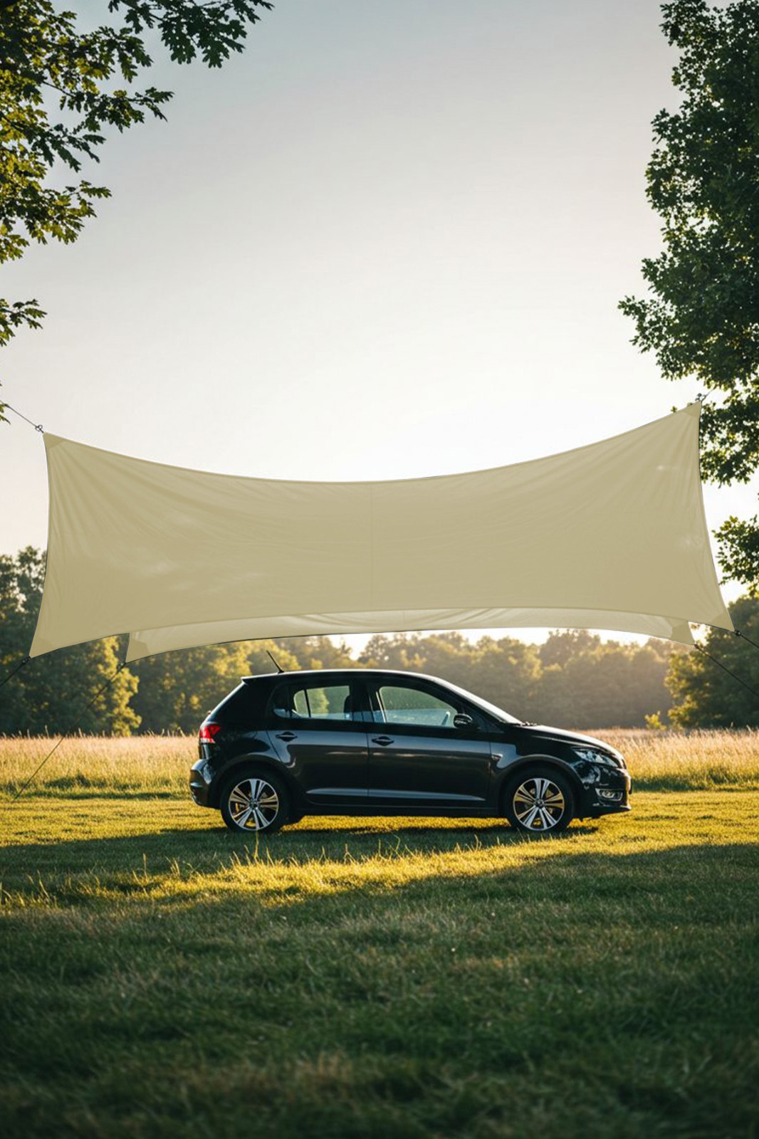 Dikdörtgen Krem Su İtici Kumaş Gölgelik – Bahçe, Araç ve Teras Kullanımı İçin Dayanıklı Koruma