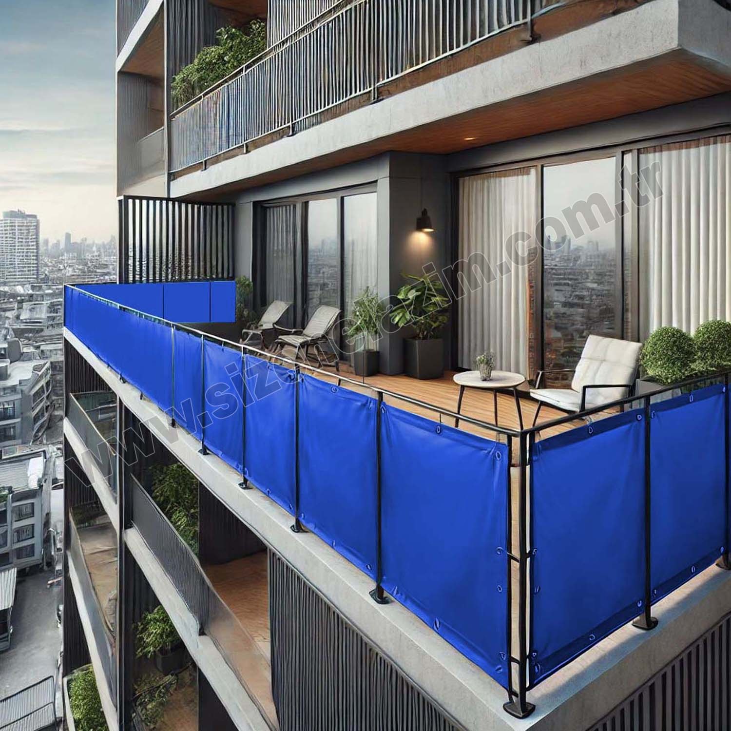 Mavi PVC Su Geçirmez Balkon Demiri Korkuluk Çit Branda
