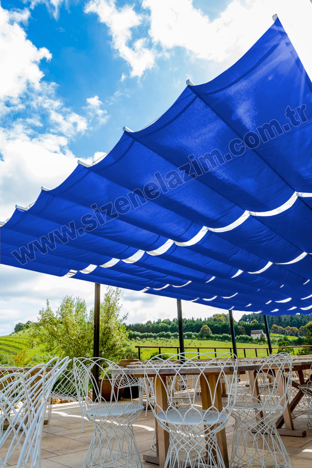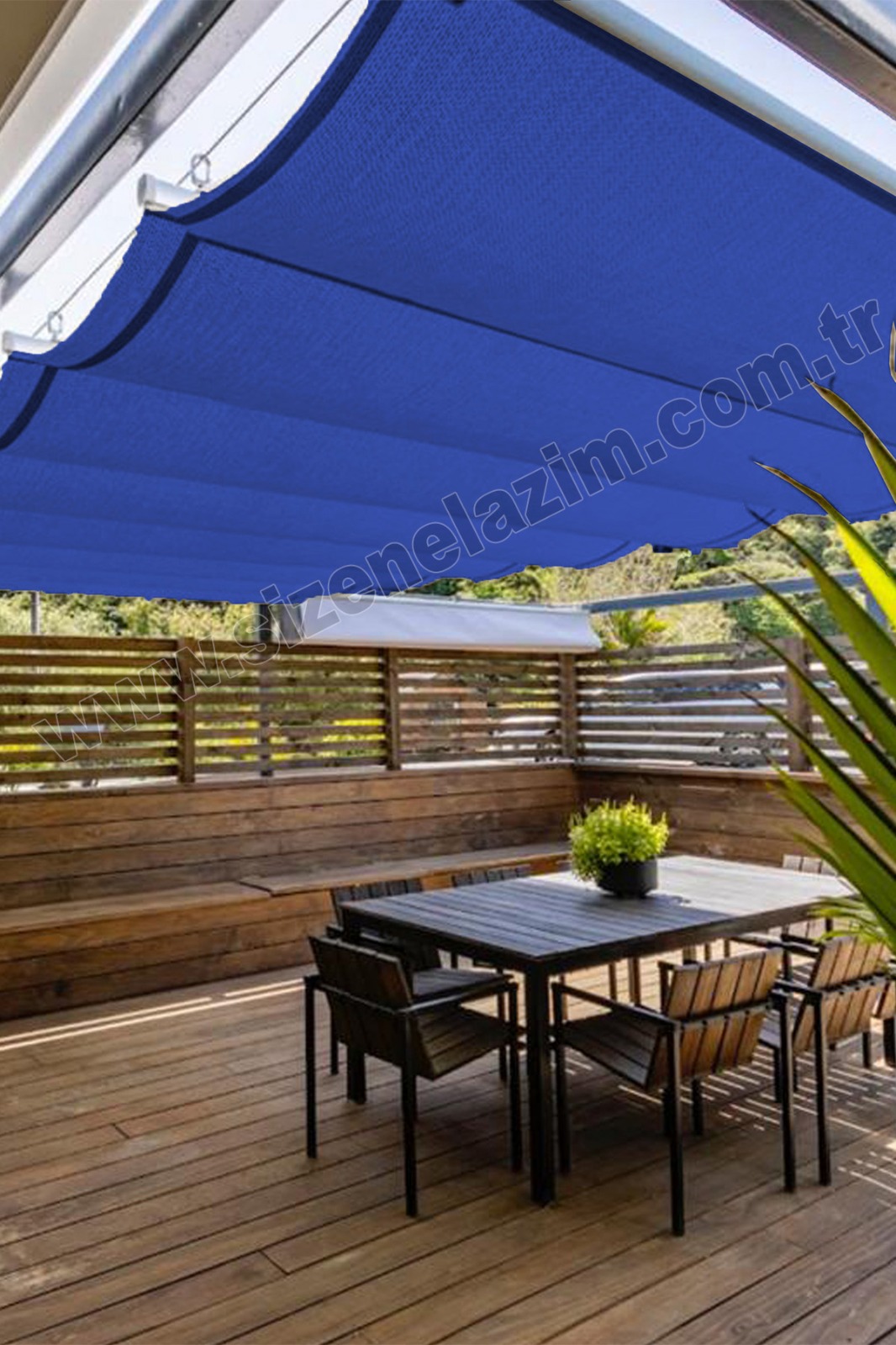 %95 Sıklıkta Gölgelik File – Teleskopik Tente Sistemi Mavi Jut Güneşlik Çözümü